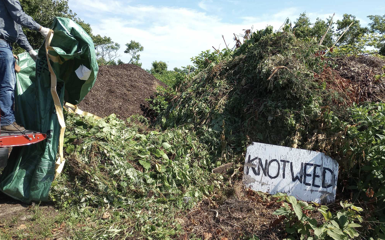 Carter Perez, and Francisco Salgado with knotweed