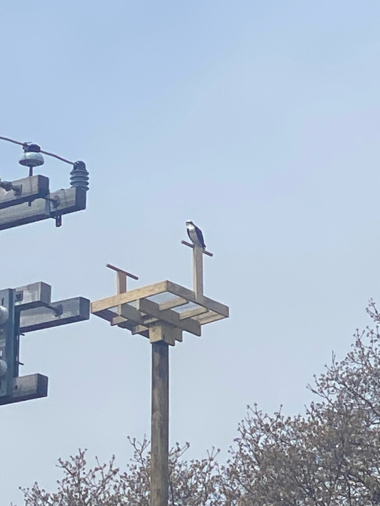 An osprey sitting on a new perch, April 2023 Photo: Jay Cushing