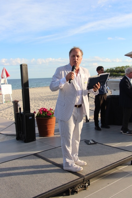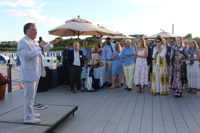 Guests arrive as the sun begins to lower over the Sound, gathering on the beach to enjoy conversation, hors d’oeuvres, raw bar offerings, and drinks. The setting is relaxed and festive, with the natural beauty of the island as the backdrop. Each year, hundreds of people attend, with turnout in past years ranging from more than 350 to nearly 450 guests, even during heat waves or uncertain weather.